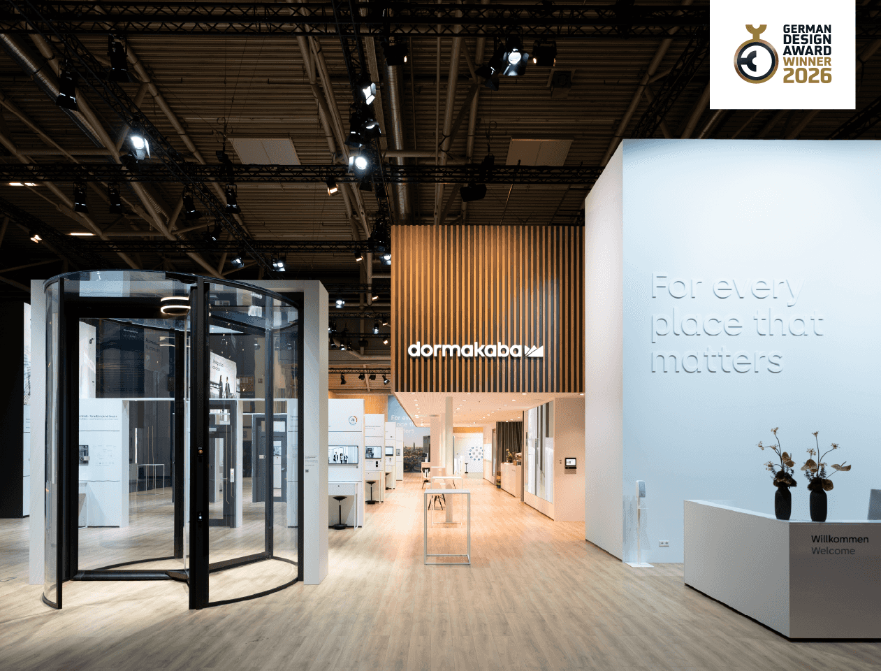 So entstand ein Messeauftritt, der Vertrauen nicht nur kommuniziert, sondern räumlich erlebbar macht. Das Konzept überzeugte Besucher und Jury gleichermaßen und wurde mit dem German Design Award 2026 ausgezeichnet.